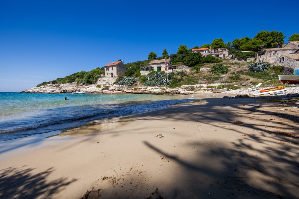 BISEVO, CROATIA – AUG 15, 2016: -Salbunara is situated in the south side of Bisevo island. It is a deep, sandy bay harbouring a few small stone houses.