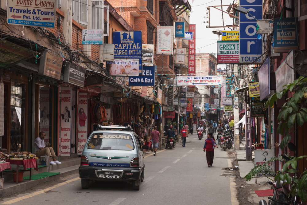 KATHMANDU, NEPAL – OCTOBER 29 : Nepalese people walking at beside road at Thamel market on October 29, 2013 in Kathmandu, Nepal. (Anirut Thailand / Shutterstock)