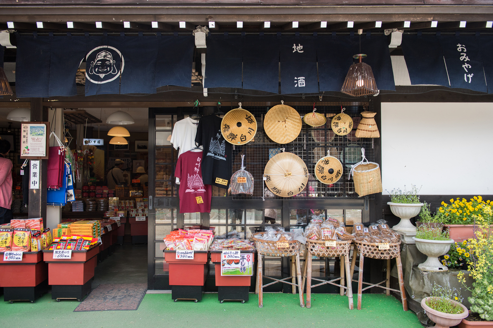 GIFU, JAPAN – MAY 16, 2016: Store in Shirakawago (Shirakawa Village) world heritage village in summer. Shirakawago is a village located in Gifu Prefecture, Japan.