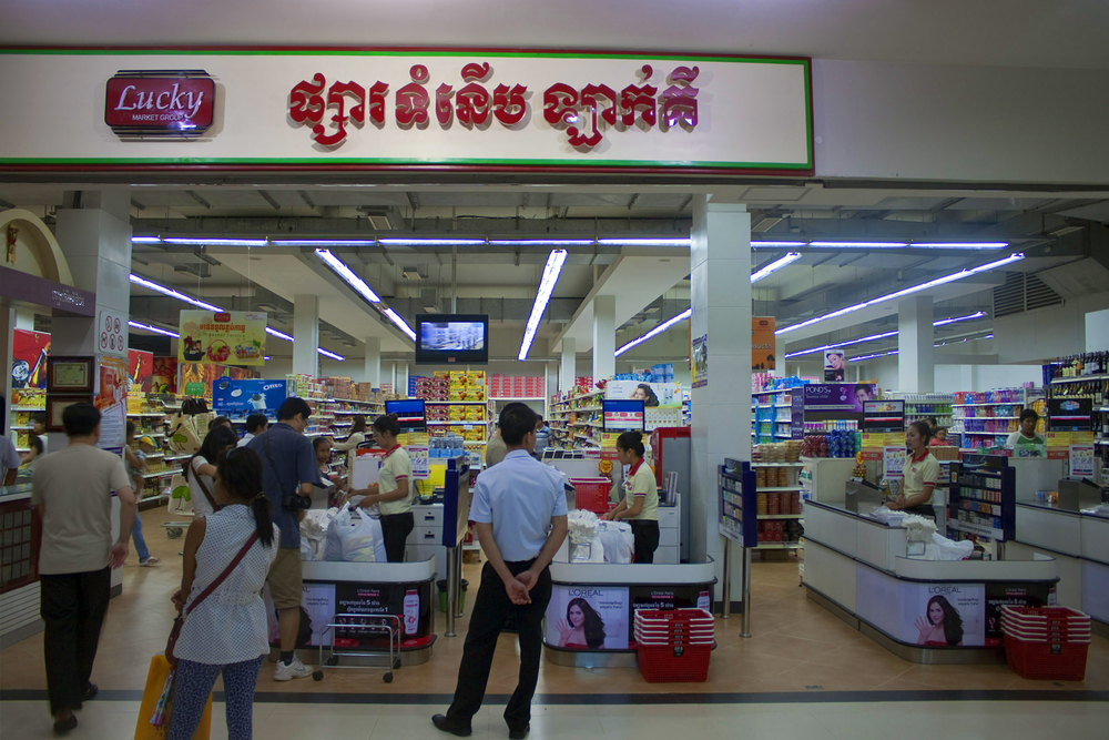 SIEM REAP, CAMBODIA – JULY 13: Unidentified people shop in a local supermarket in Siem Reap, Cambodia on July 13, 2012. There are still just a few supermarkets in Siem Reap. (Matyas Rehak / Shutterstock)
