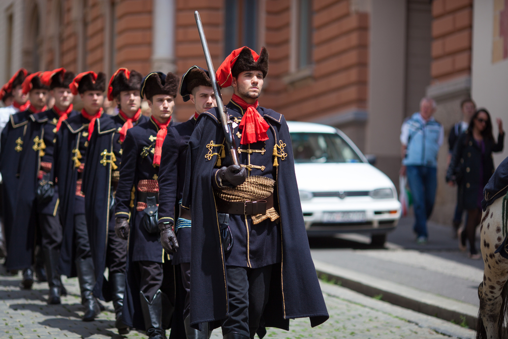 ZAGREB, CROATIA – MAY 09: Changing of the guard honorary Cravat Regiment on May 09, 2015 in Zagreb, Ban Jelacic Square. (Ivan Smuk / Shutterstock)